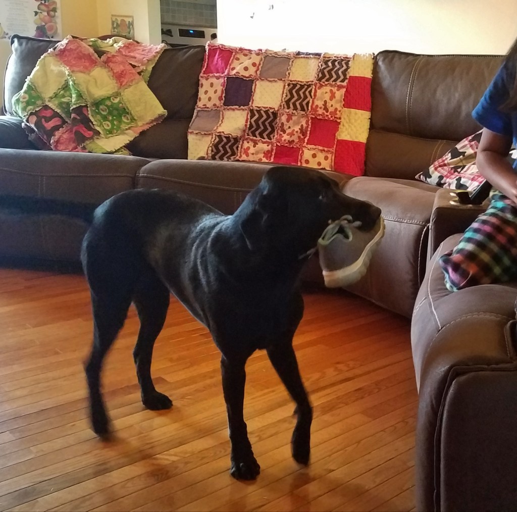 Enter our home and you will be eagerly greeted by a Labrador Retriever. Greet her and she’ll trot off and return with a gift just for you- a shoe.