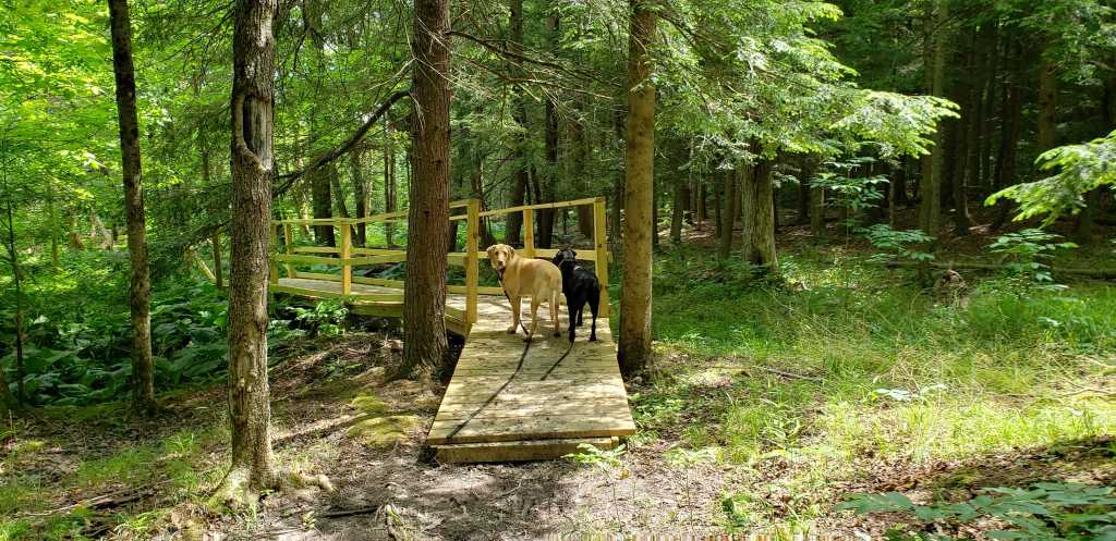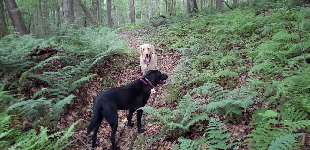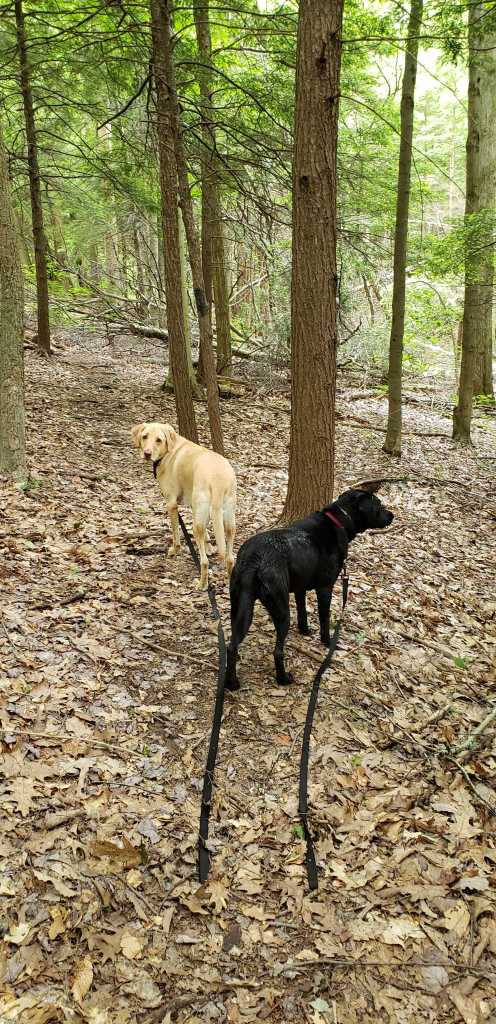 On our mountain vacation, it was a delight to watch our Labs moving confidently together along the trails. The quietude of the woods enveloping us was only broken with the command, “Whoa.” Anytime we came up on water, expanses of mud, or sharp turns, I asked the dogs to stop and wait for further guidance.